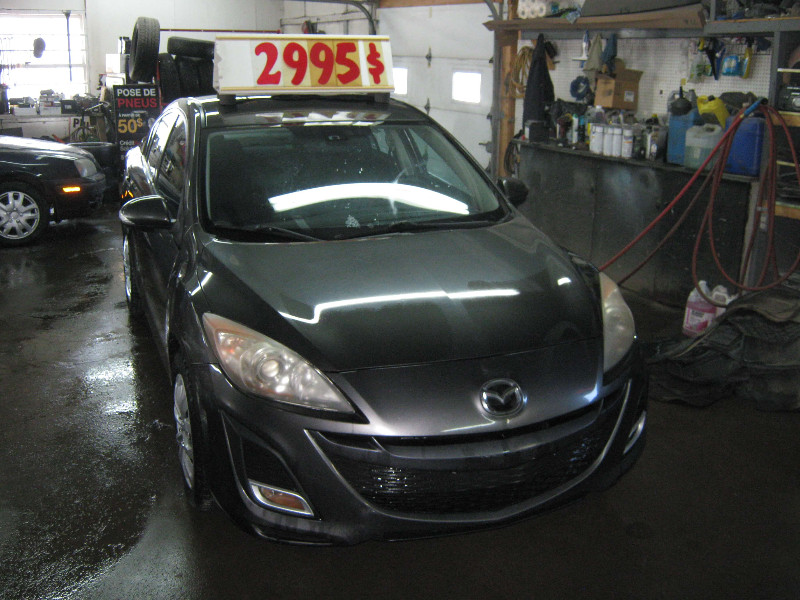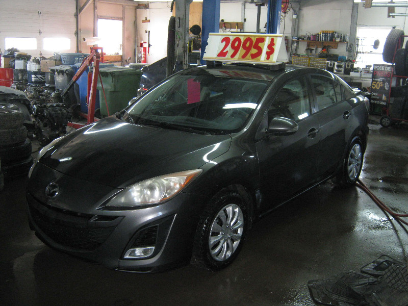 Mazda 3 GS 2.5L 2010 automatique, air climatisé non fonctionnel, groupe électrique, régulateur de vitesse, lecteur CD. Véhicule roule bien, aucun problème connu, le bearing arrière gauche, les freins aux 4 roues et les links avant sont neufs. Moteur et transmission garantis 1 mois/1700 Km, contactez-nous au 514-917-3248.
